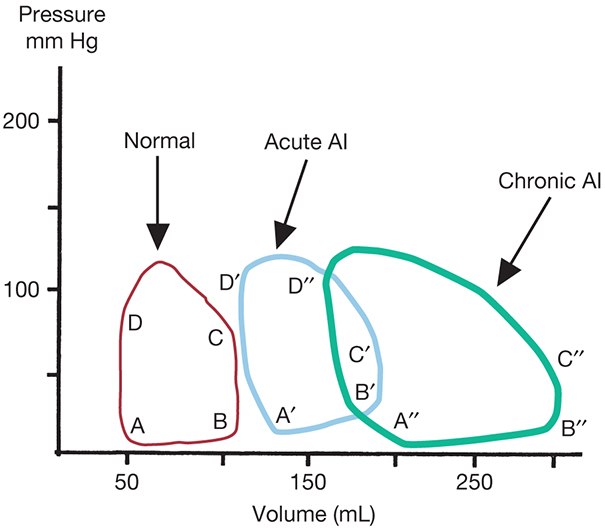 P-V loops of acute and chronic aortic insufficiency (AI).