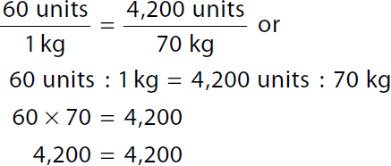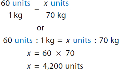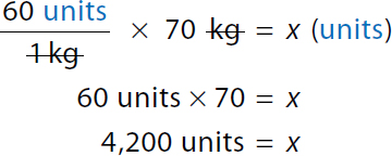 Step 1: The ordered dose is 60 units per kg and the patient will need 70 times that amount (4,200 units) because the patient weighs 70 kg.