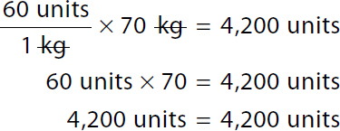 Clinical CLUE 14-6Increased accuracy is not the only advantage of using dimensional analysis to solve advanced clinical calculations. Another advantage is the ability to incorporate multiple conversion factors into one equation rather than performing multistep calculations. When using ratio-proportion or the formula method, weight-based heparin protocol calculations for weights given in pounds and ounces will require one or more conversion calculations in addition to the two-step process to determine bolus volumes or IV infusion rates. However, with dimensional analysis, additional conversions can be calculated within a single equation by inserting the appropriate conversion factors. |