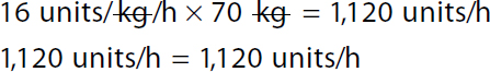 Step 1: The ordered dose is 16 units/kg/h, so the patient will need more than 700 units/h (10 units/h × 70 kg) but less than 1,400 units/h (20 units/h × 70 kg).