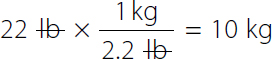 22-pound times 1 kilogram over 2.2 pounds equals 10 kilograms. On the left-hand side. Both the numerator and denominator pound canceled each other.
