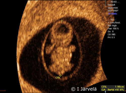 3D ultrasound. 3D ultrasound scan in the 8th week of pregnancy.