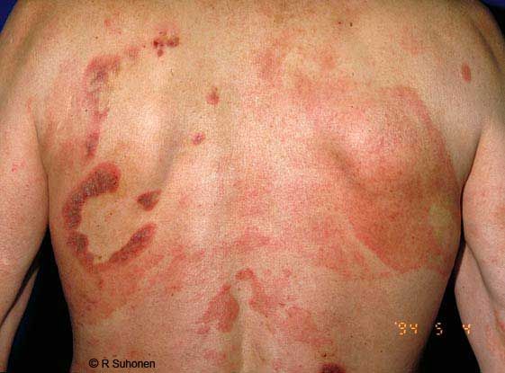 T-cell lymphoma of the skin (Mycosis fungoides). T-cell lymphoma of the skin, also known as mycosis fungoides, is the most common type of lymphoma occurring in the skin. It usually grows slowly and may resemble a fungal infection. Several skin biopsies may be required before the diagnosis can be established.