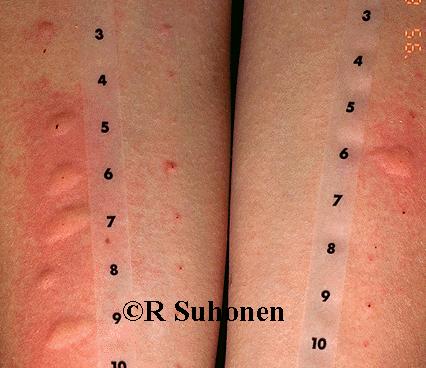 Skin prick testing. Skin prick testing in a patient with multiple IgE-mediated allergies.