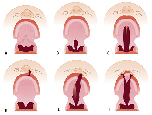 Cleft lip and palate. Types of cleft lip and/or palate can be divided into two main categories: cleft lip that may be associated with cleft palate, and cleft palate only. Different types of clefts: