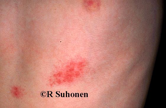 Herpes zoster on the chest. Herpes zoster (HZ) most commonly appears on the trunk, albeit any dermatome can become its target. It may affect the whole area of a dermatome (or 2 dermatomes) or only develop a small patch with blisters, in which case it may be difficult to distinguish between HZ and a HSV infection based on the clinical picture. Patient history is usually helpful - HZ very seldom recurs while HSV recurs frequently.