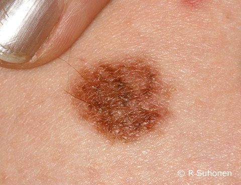 Junction naevus. Junction naevus is a non-elevated brown pigment cell naevus, which often has atypical features: the margins may be ill-defined and the colour may be uneven. Because of the suspicious appearance these naevi are often excised for histological confirmation. As the name implies, the nests of melanocytes are located at the junction of epidermis and dermis.