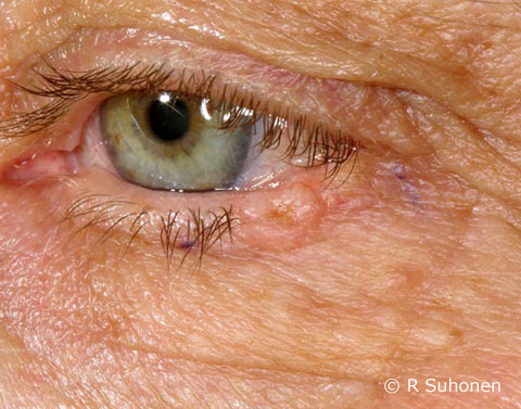 Basal cell carcinoma on the eyelid.Nodular basal cell carcinoma on the rim of the lower eyelid.
